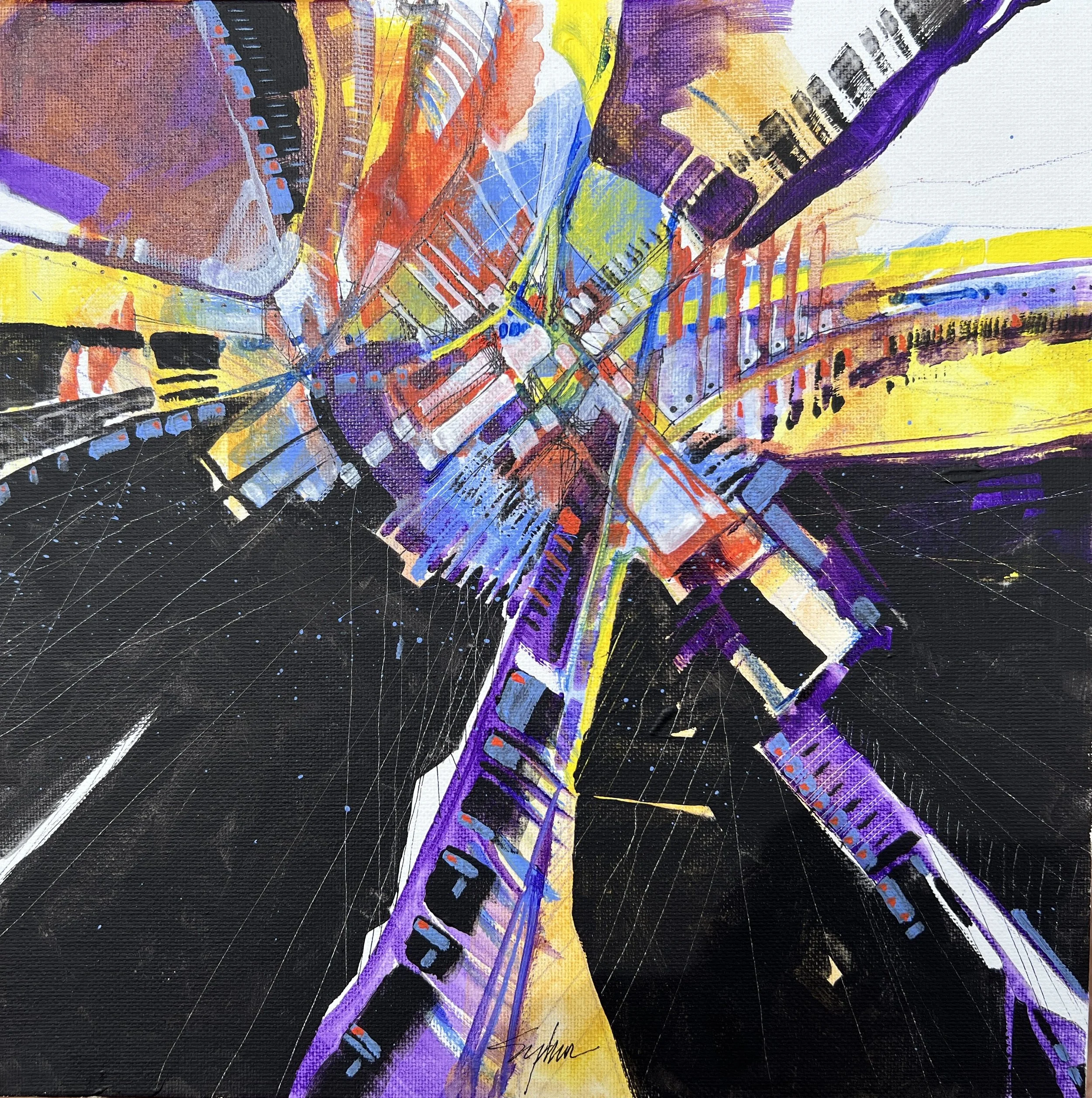 Intersection. Acrylic & ink. 12” x 12”. October 2022.